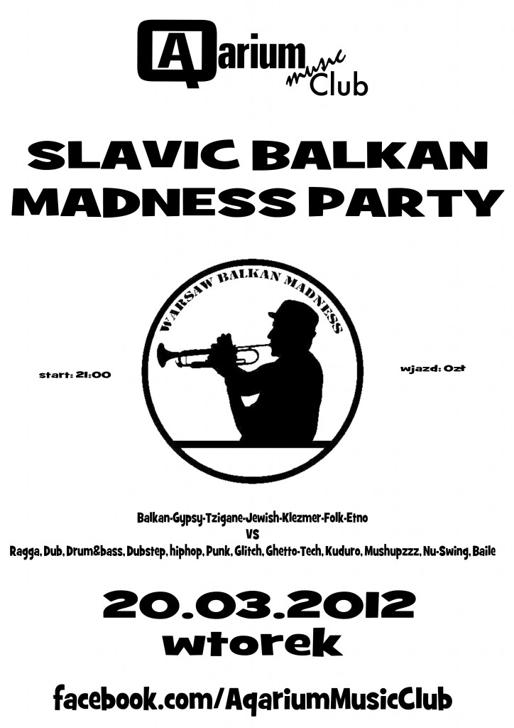 Jeśli nie masz konkretnych planów na wtorkowy wieczór i nie boisz się porządnie wytańczyć,to mamy doskonałą propozycję.O 21 w Aqarium Music Club rozpocznie się Slavic Balkan Madness Party.